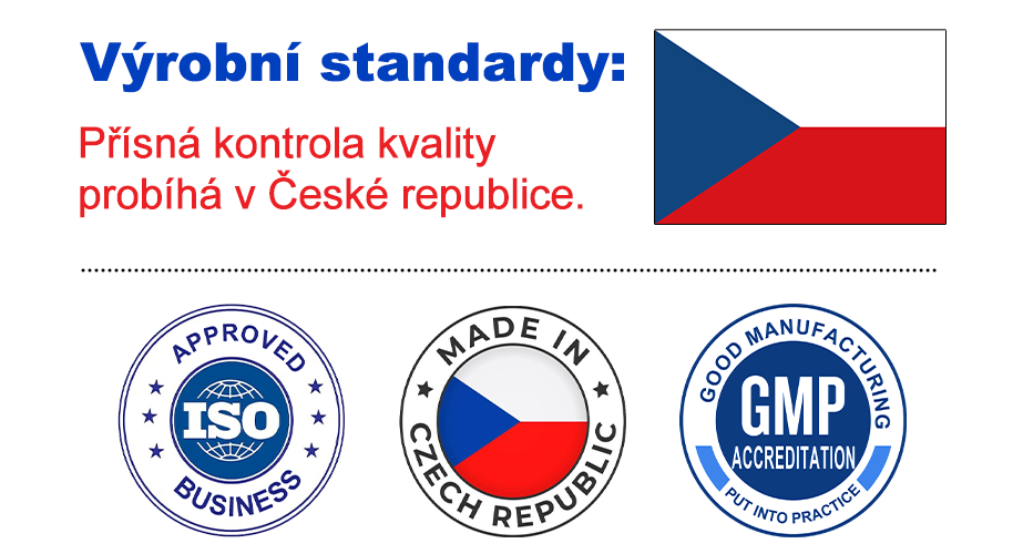 🏭 Vyrobeno v Evropě, testováno certifikovanými institucemi, splňuje normy CE a GMP.