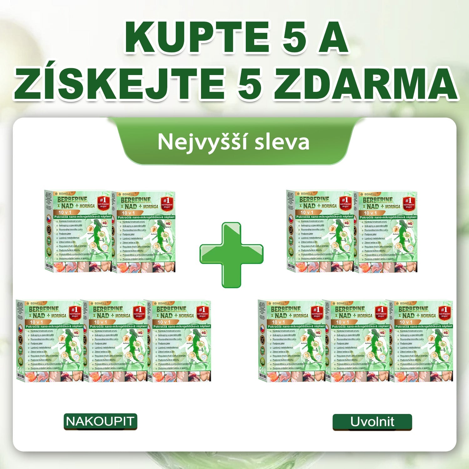BSWELL® Moringa · Berberine × NAD+ – 10v1 Pokročilá nano mikrovpichová náplast